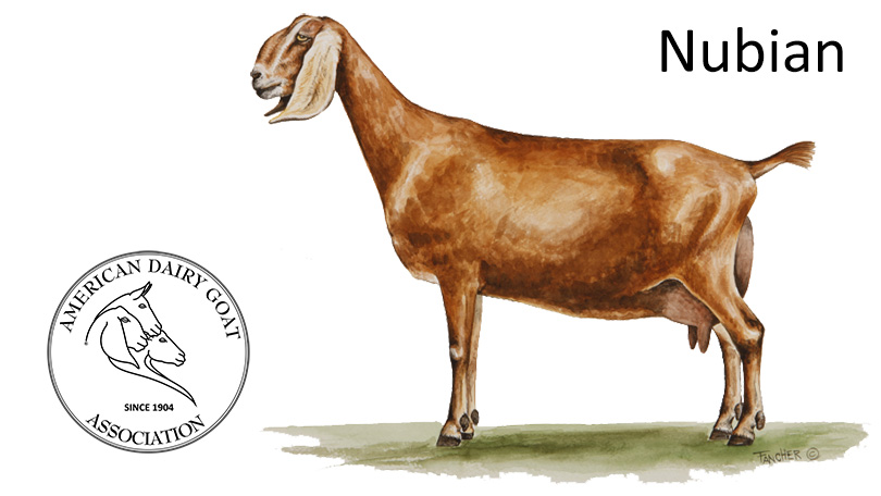 Breed descriptions are taken directly from ADGA’s “Own A Dairy Goat” booklet. Technical descriptions and rules for discrimination or disqualification are included in the ADGA Guidebook.