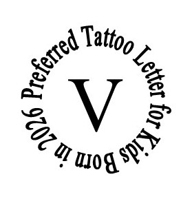 The Preferred Tattoo Letter for kids born in 2026 is V (2025 – T). Tattoo Policy & Instructions